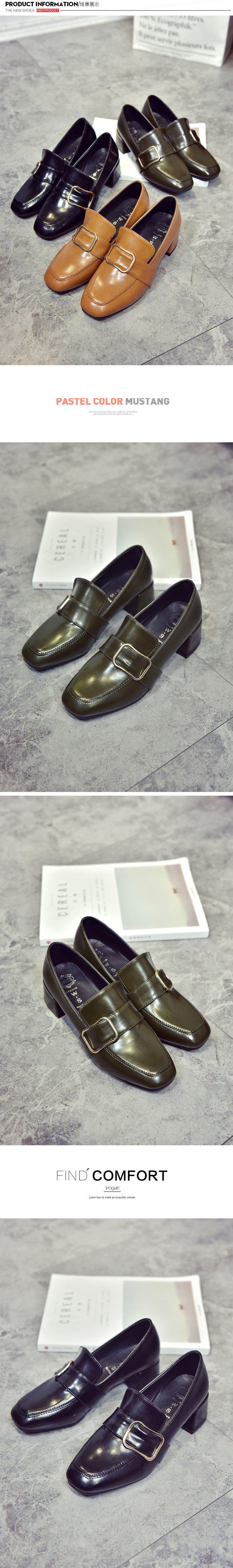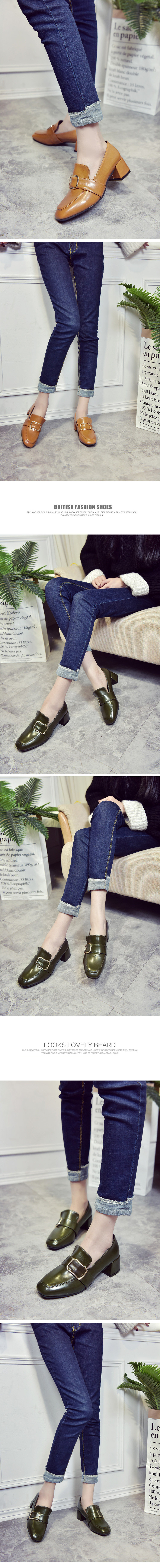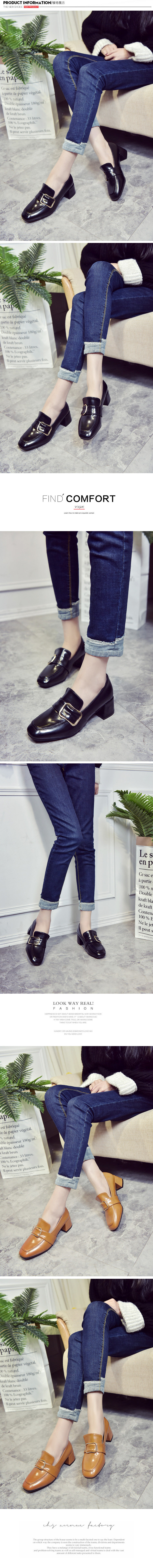 韩版高跟鞋女春季新款性感漆皮方头皮带扣英伦风女鞋粗跟单鞋