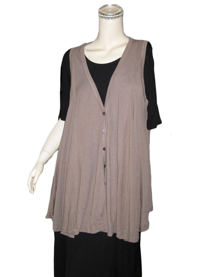 柔らかなカットソー生地で暖かく着心地の良いゆったりロングジレです。