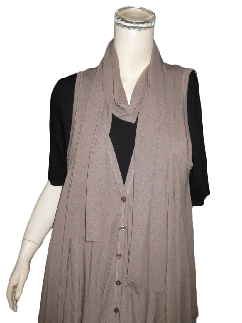 &.nostalgia ☆フレアシルエットのゆったりロングジレ ストール付 <M モカ茶>
