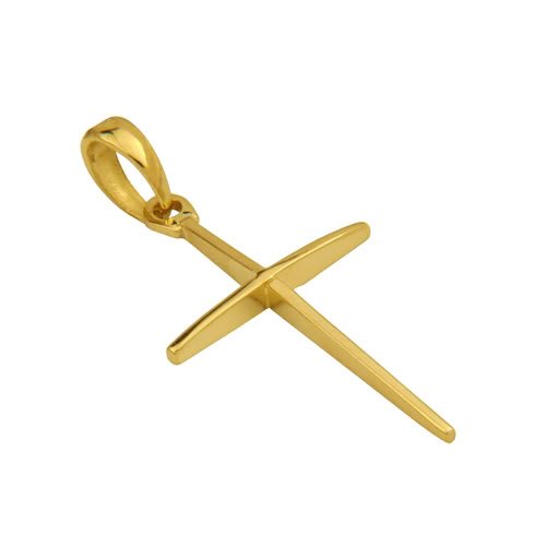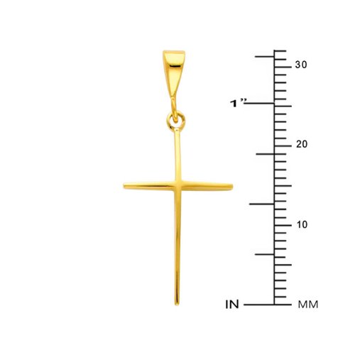 -. Title : 14k Yellow Gold Slender Cross Charm Pendant with 1.2mm Singapore Chain Necklace