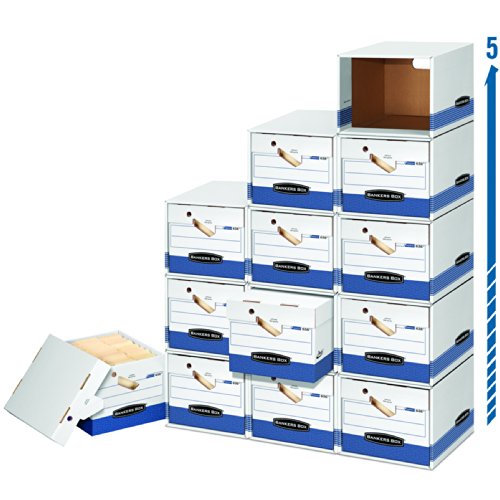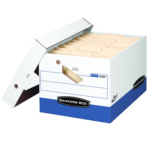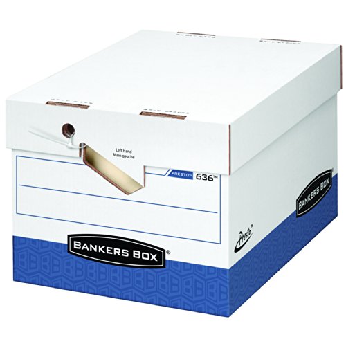 Bankers Box Presto Heavy-Duty Storage Boxes with Ergonomic Design, Letter/Legal, White/Blue, 12 Pack (0063601)