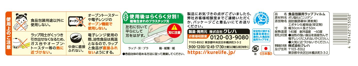 "NEW CRA LAP Regular Evil 30cm * 50m" is a kitchen wrap that adopts "click and lock" in which the lid closes.