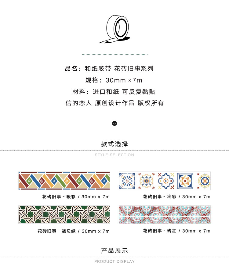 花砖旧事系列和纸胶带 手账日记相框胶带 小物件装饰贴纸