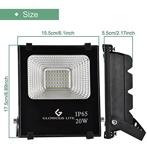 GLORIOUS-LITE LED Flood Light, 20W(100W Halogen Equiv) Outdoor Led Floodlight, IP66 Waterproof Outdoor Work Lights, 6500K Daylight White, 1800lm, 110V
