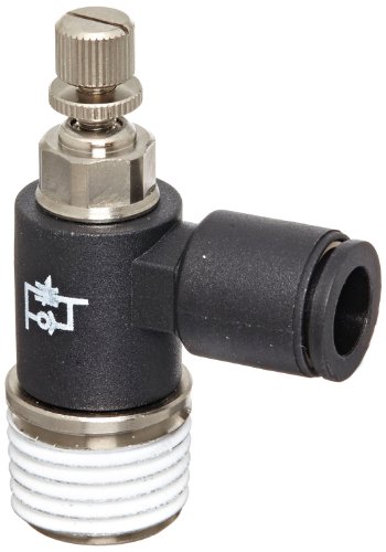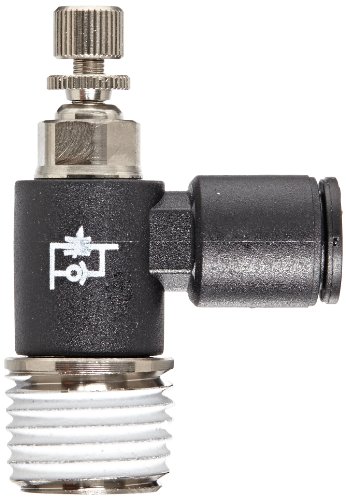 Legris 7665 56 14 Nylon Air Flow Control Valve, 90 Degree Elbow, Meter-Out, External Screw/Knob, 1/4" Tube OD x 1/4 NPT Male
