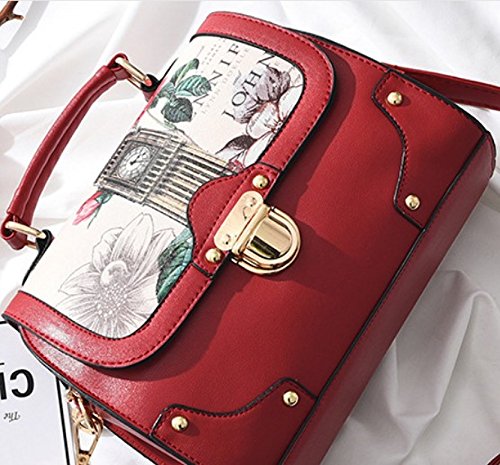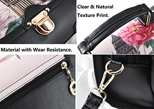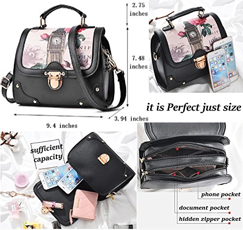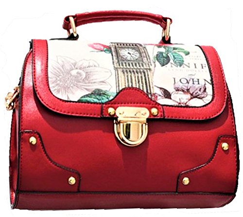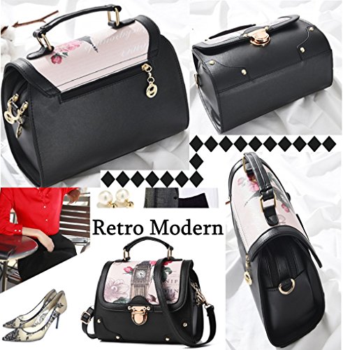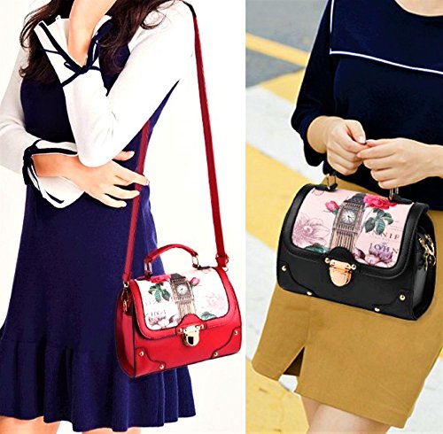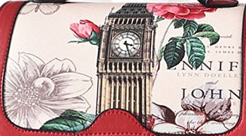 Retro Modern Handbag for Women with Shoulder Strap [ Two Way Bag ] European British London Big Ben & Rose Flowers