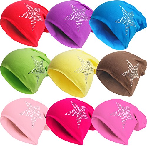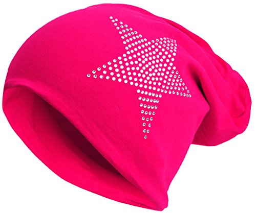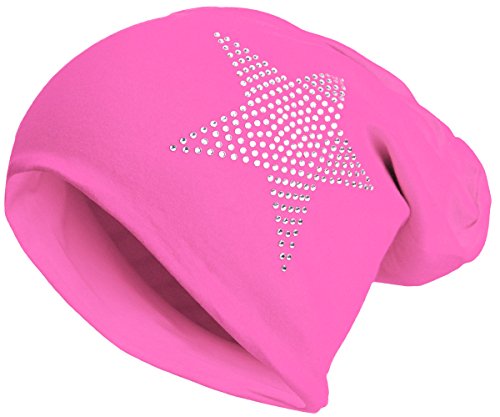Brandshopping99 Mutze Beanie Kinderbeanie mit Strass Jersey Long Slouch Suss Trend 2017 in verschiedenen Farben Sternmotiv