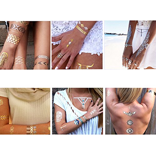 PREMIUM QUALITY - Our metallic temporary tattoos will last several days and keep its flash & glitter look. Not to mention, they’re waterproof