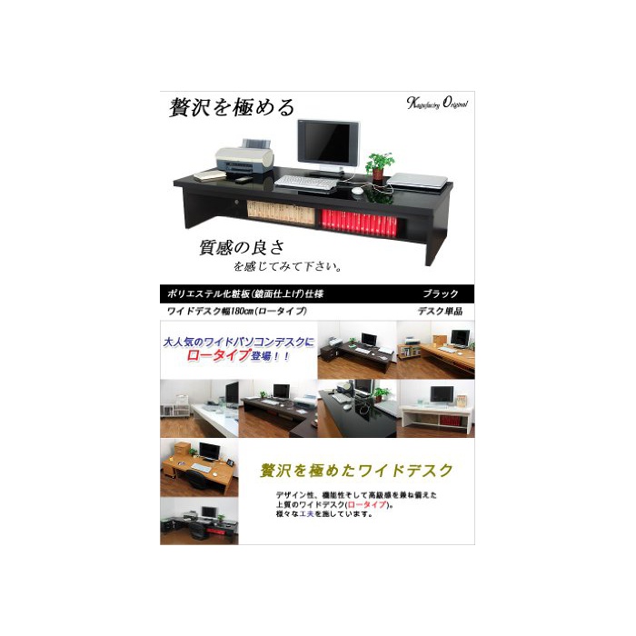 원본상품명: 家具工場直販 高級素材(鏡面仕上仕?) ワイドデスク ロ?タイプ (ブラック?色/幅180?行74高さ38)家具ファクトリ? 日本製