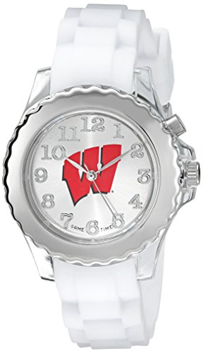 -. Binding : Watch -. Brand : Game Time -. Color : University of Wisconsin -. Department : unisex-child -. EAN : 0846043153590 -. Feature : Solid metal alloy case with stainless-steel case back and crown / Soft, pliable solid white silicone strap with solid stainless steel buckle closure and keeper / Durable mineral crystal protects watch from scratches, water-resistant depth rating to 30 meters (99feet) / All with a limited lifetime warranty / Water resistant to 99 feet (30 M): withstands rain and splashes of water, but not showering or submersion -. Label : Game Time -. Manufacturer : Game Time -. Model : COL-FLW-WIS -. MPN : COL-FLW-WIS -. NumberOfItems : 1 -. PackageQuantity : 1 -. PartNumber : COL-FLW-WIS -. ProductGroup : Watch -. ProductTypeName : WATCH -. Publisher : Game Time -. ReleaseDate : 2014-06-13 -. Studio : Game Time -. Title : Game Time Youth COL-FLW-WIS "Flash White" Watch - Wisconsin - "W Logo" -. UPC : 846043153590