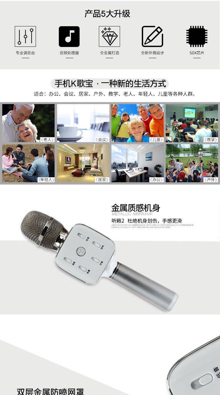 Brand-new Q9 microphone is developed by Micgeek, a lifted brand specialized in bluetooth karaoke microphone speakers. This is a multifunctional microphone used on your pc, phone and car, and much improvement compared with other karaoke microphones. Q9 can connect mobile phone via bluetooth, compatible with various Singing Applications, and its built-in audio has clear and vivid sound effect, you can listen to the music and sing with karaoke effect anytime and anywhere.