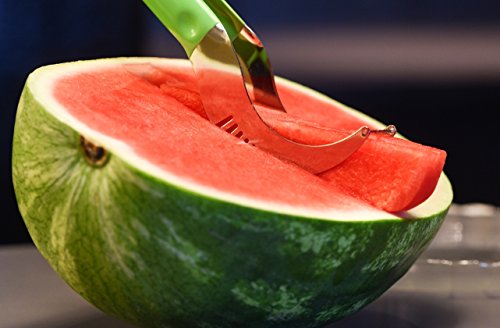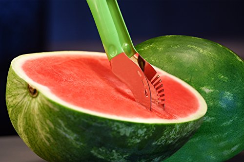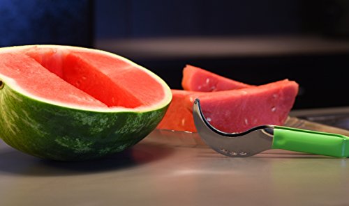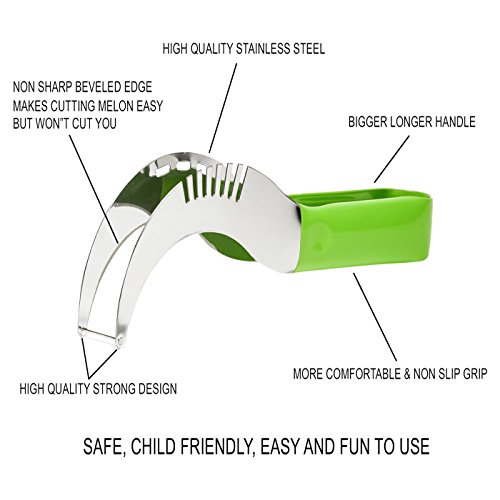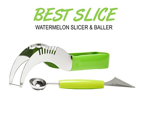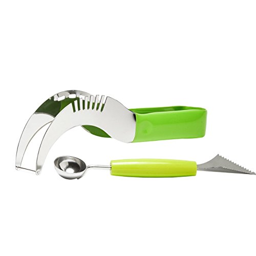 Watermelon Slicer Corer and Serving Tongs with Melon Baller and Fruit carving knife Best Slice green handle slicer, stainless steel