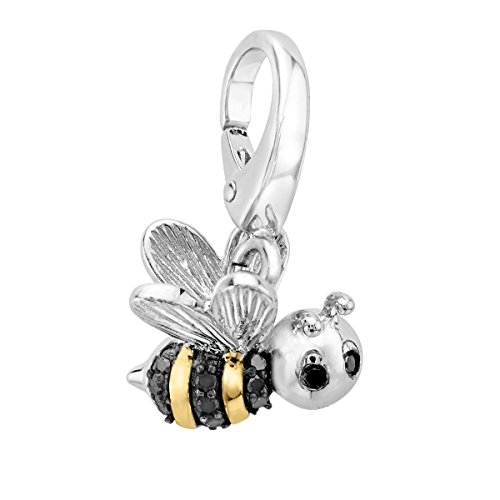 -. Title : Bee Charm with Black Diamonds in Sterling Silver & 14K Gold
