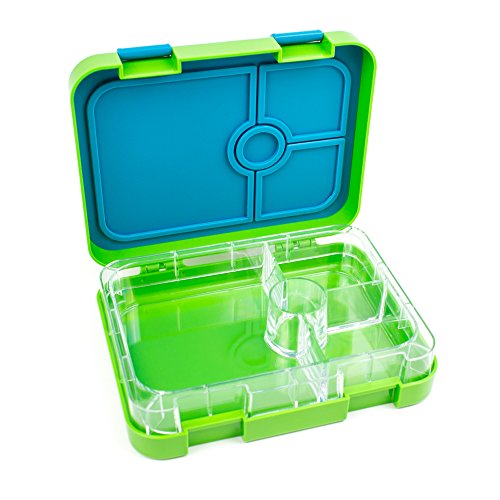 MULTI COMPARTMENT LUNCH BOX - Comes with one large compartment suitable for packing sandwiches, wraps etc, two 3/4-cup compartments (veggies/fruits, proteins), and an additional central well to carry dips, ketchup, yogurt etc. The outer box comes with two-latches for closure that is easy to open and the leak proof design ensures no spilling or seeping out of any thick liquids that you don't need to carry an additional tote bag. Not suitable though for liquids like water, milk, soups etc.