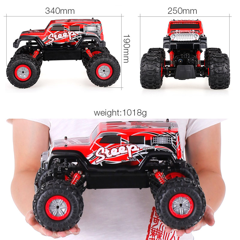 This super car features a full proportion 1/12 scale RC crawler car design, equipped with a 2.4GHz radio system ready to run. It's amphibious which means you can play this car both on the ground and water, even on snow. Moreover, its body shell is made of PVC material. With high performance tire and shock absorbers that you can steadily move forward and backward, turn left and right. Just enjoy the fun!