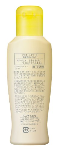 -. Binding : Health and Beauty -. Brand : Bioré -. EAN : 8853576141194 -. Feature : SPF28 PA++ sunscreen for face and body / water-base, Alcohol-free, No-coloring, no-scent / perfect for kids -. IsAdultProduct : 0 -. Label : Kao -. Manufacturer : Kao -. Model : NA -. MPN : 4901301249050 -. PackageQuantity : 1 -. PartNumber : 4901301249050 -. ProductGroup : Beauty -. ProductTypeName : HEALTH_PERSONAL_CARE -. Publisher : Kao -. Studio : Kao -. Title : Biore SARASARA UV Mild Care Milk Sunscreen 120ml SPF28 PA++ for Face and Body -. UPC : 885363507195