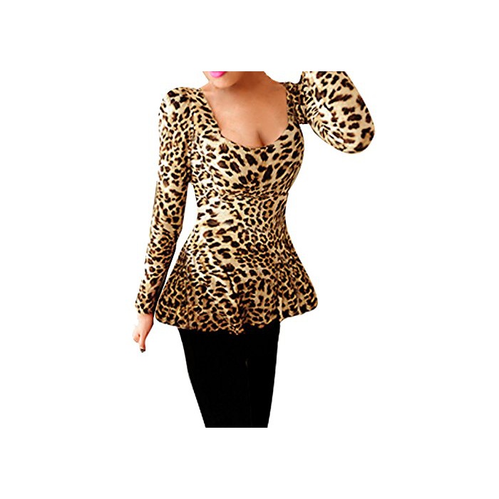 원본상품명: Allegra K (JP) レディス ペプラムシャツ ヒョウ柄 プルオバ 長袖 ストレッチ クルネック S