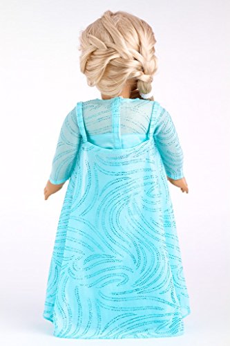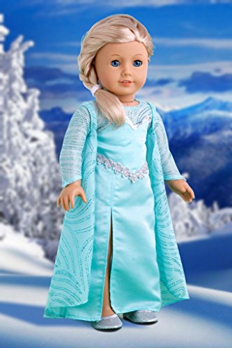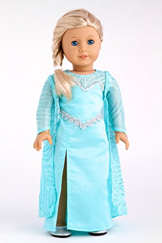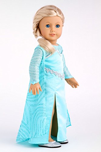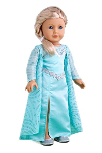 - Inspired by Elsa this beautiful turquoise sparkling satin dress is all hand made with a great attention to details. Sleeves and cape are made of a sheer blue fabric decorated with a tiny silver crystals. To complete the look the outfit comes with perfectly matching silver shoes.