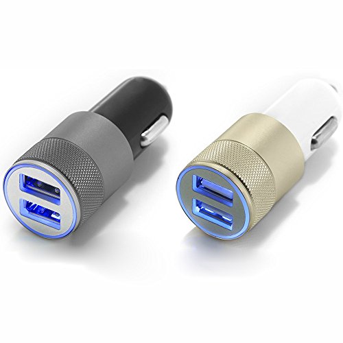 CiDoss 2 Port 3.1A USB Car Charger for Cell Phone, Tablet & Other USB Electronic Devices - 2 Pack(Gold+Black)