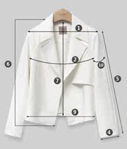| 尺码 | ①肩宽 | ②前胸宽 | ③后胸宽 | ④袖口围 | ⑤袖长 | ⑥前衣长 | ⑦后中长 | ⑧前摆宽 | ⑨后摆宽 | ⑩上臂围 | ||
