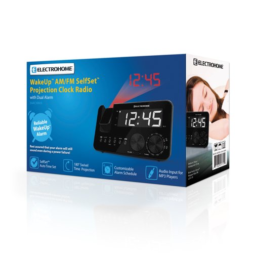 - Title : Electrohome AM/FM Projection Clock Radio with WakeUp! Battery Backup Alarm, Jumbo 1.2 inch LED Display, SelfSet Auto Time Set & Dual Alarm (EAAC500US) & One Bonus High Quality 6-foot Stereo Audio Cable for MP3 Players (CAB35MM5)