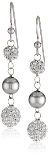 STERLING SILVER SWAROVSKI ELEMENTS CLEAR CRYSTAL BEADED BALL DANGLE EARRINGS