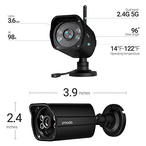 -. Title : Zmodo 1080p Full HD Wireless Security Camera System, Dual Band 5GHz/2.4GHz, 98ft Night Vision, 96° Wide Viewing Angle - 4 pack - Cloud Service Available
