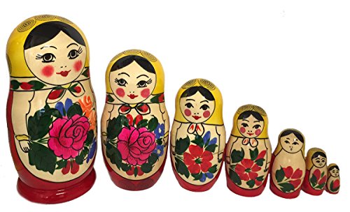 -. Title : 7 Pieces Semenov Wooden Russian Nesting Dolls Matryoshka Wood Nested Stacking Dolls 6 1/2 Inch