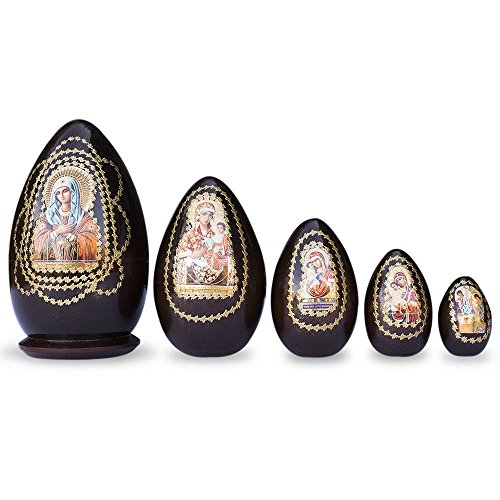 -. Title : 6.5'' Set of 5 Virgin Mary Icons Wooden Nesting Dolls