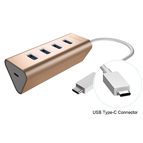 Overview: Easy-to-install USB Type-C to 4-Port USB 3.0 Hub lets you connect up to four USB enabled devices simultaneously and sync your photos, music and data at up to 5Gbps transfer speed. The USB-C female port allows you to charge your Apple new MacBook while transferring files via the four USB 3.0 ports.