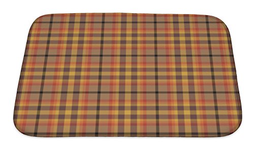 Gear New No Slip Microfiber Memory Foam Orange Plaid Pattern Bath Rug Mat, 24" X 17"