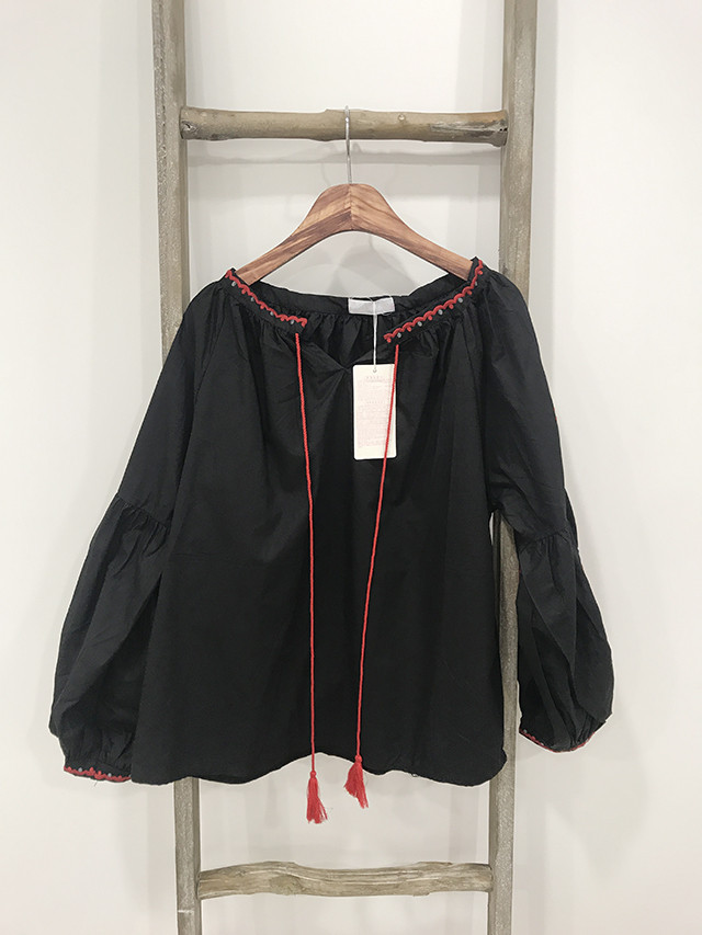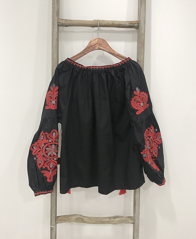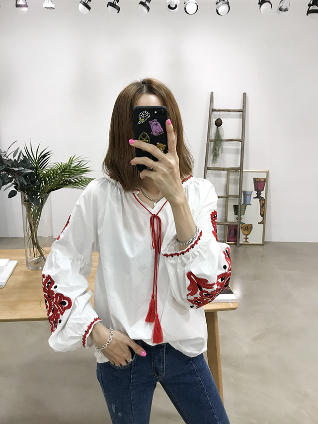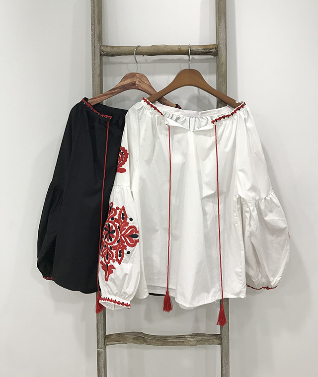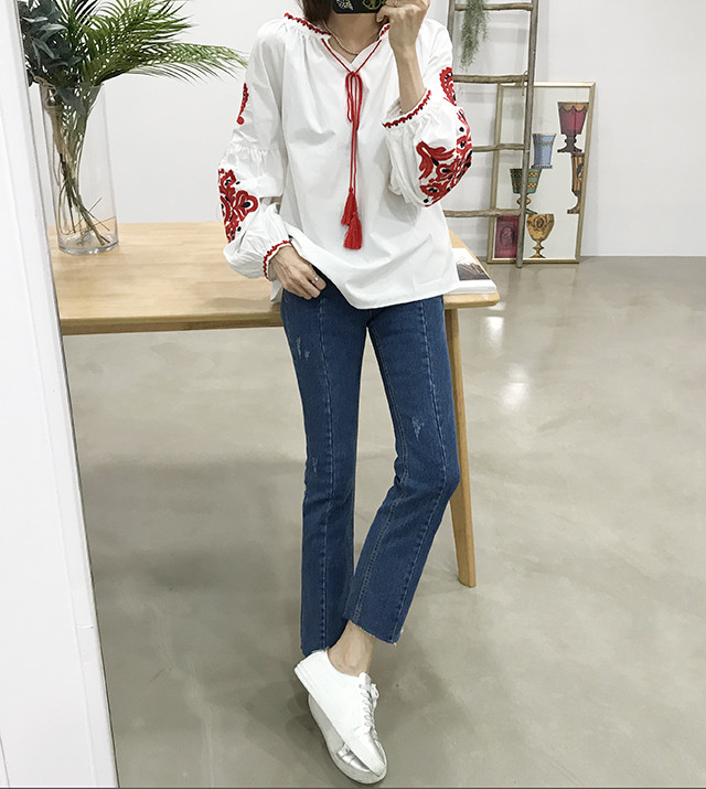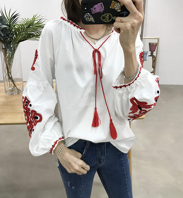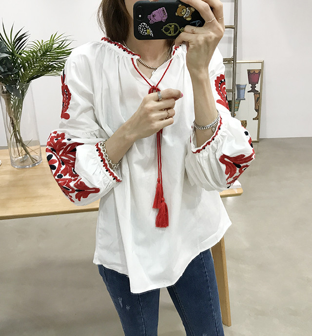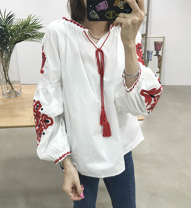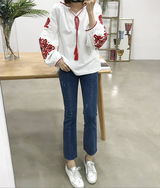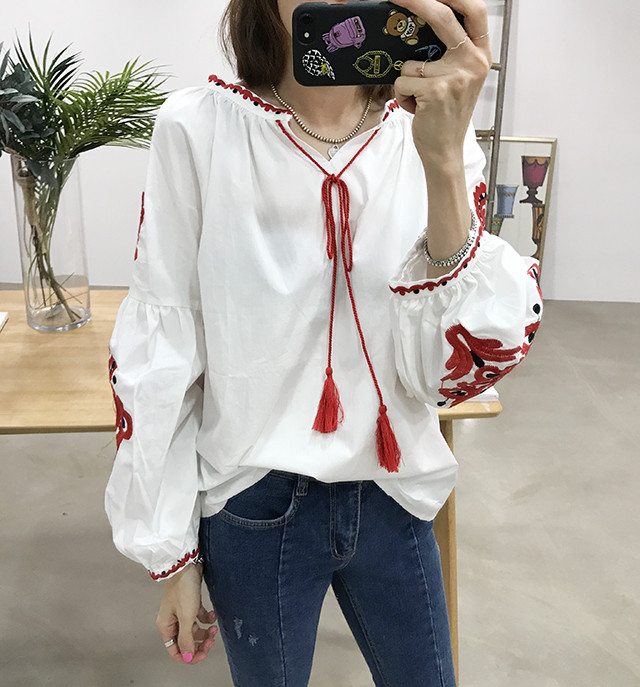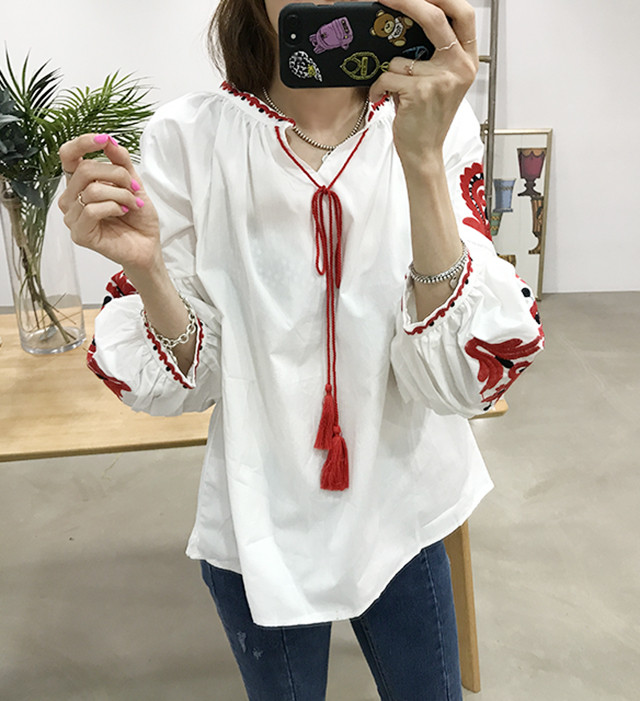 Gullish look Tassel flower Embroidered blouse Lovely Lovely Comfortable romantic woman coordination