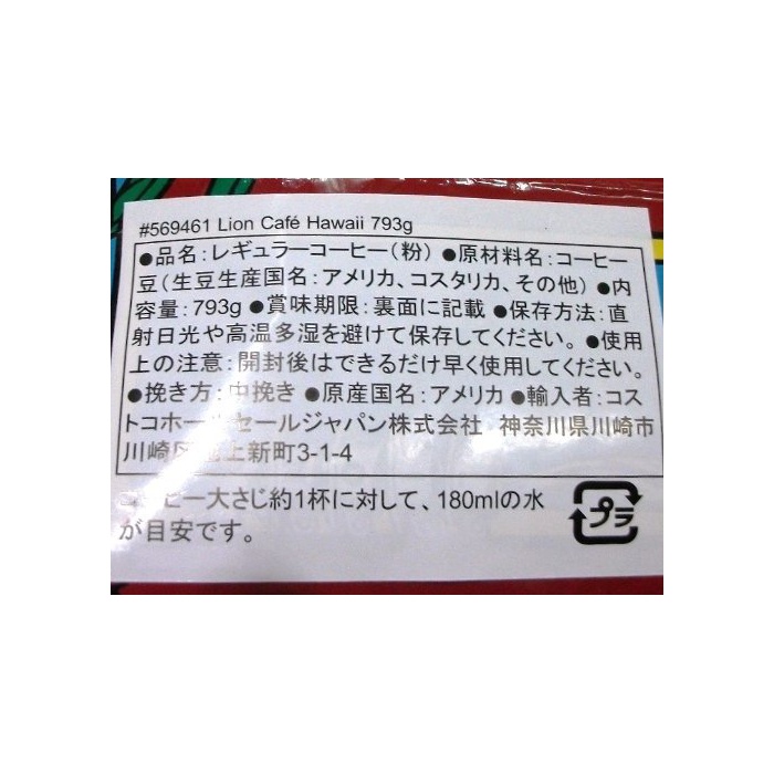 원본상품명:Lion Cofe Hawaii ライオン カフェ ハワイ ミディアム ダ?ク ロ?スト コ?ヒ? (粉) 793g