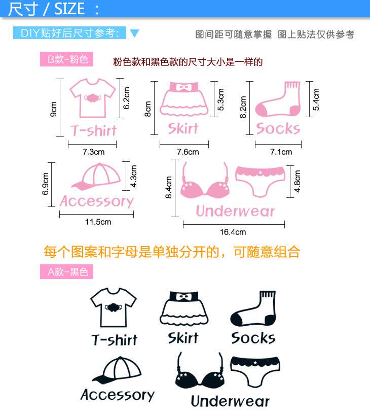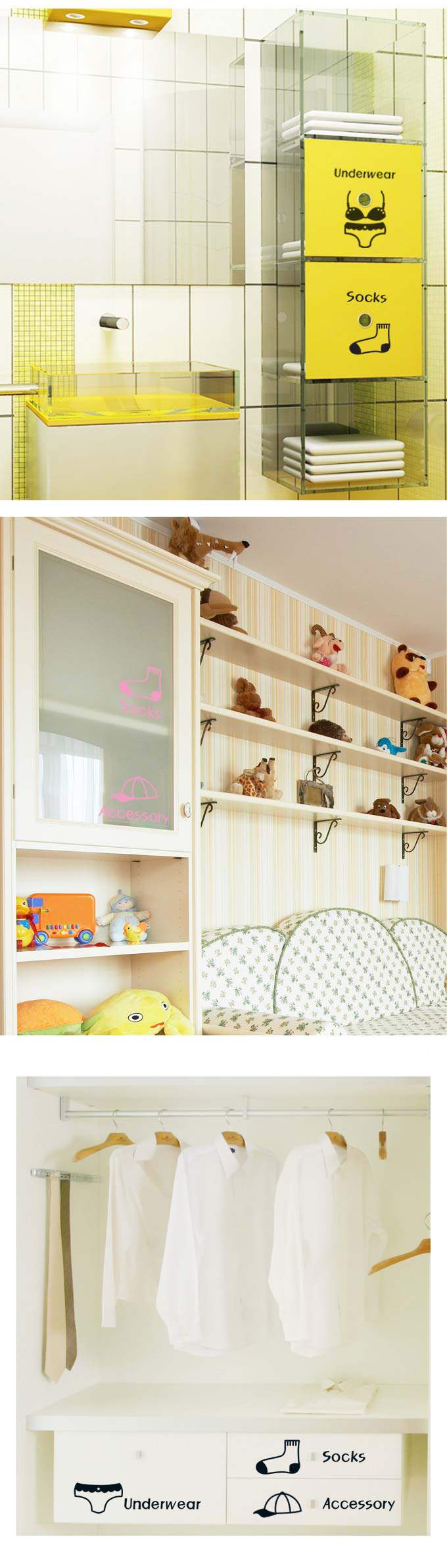 韩国时尚卧室儿童房衣橱柜家具空调装饰贴画衣物分类墙贴纸
