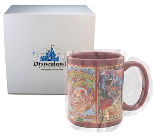 - Feature : Vintage Disney Attraction Poster graphics / Poster art includes: Pirates of the Caribbean, Country Bear Jamboree, Big Thunder Mountain and Disneyland Railroad / Microwave safe / Measures approximately 3 3/4"H x 3 1/4"D (4 3/4"W at handle); holds 12 oz. / Comes packaged as pictured