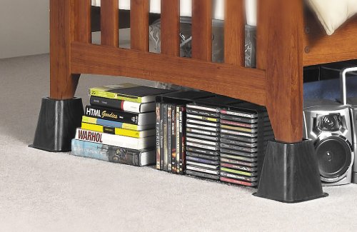 Made from durable molded plastic, these bed risers add 5 1/4 inches to the height of your bed creating instant underbed storage. They come in a set of four and fit bed posts of up to 2.63 inches in diameter. Perfect for home or dorm room.
