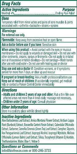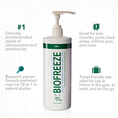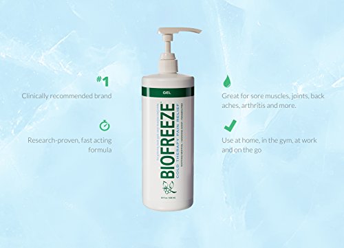 ReleaseDate : 2015-06-22 Studio : Biofreeze Publisher : Biofreeze Binding : Sports Product Description BIOFREEZE Pain Relieving Gel 4oz. A fast-acting, deep penetrating, long lasting pain reliever. BIOFREEZE can effectively help relieve pain from sore muscles, muscle sprains, back, shoulder, neck pain, arthritis, painful ankle, knee, hip and elbow joints, and muscular strains. Use BIOFREEZE to relieve pain prior to ultrasound treatments, massage therapy, soft tissue trigger point therapy, rehabilitation exercises and pre and post workout stretching. 0