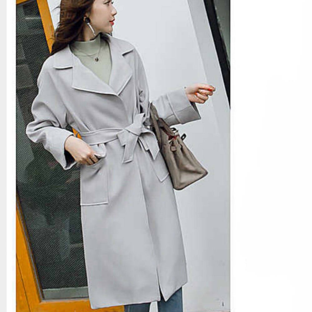 商品詳細通勤・オフィス◎/淡色☆トレンド フェミニン ロングラップコート サイズ展開は:S/M/Lになります。 採寸は下記通りです、ご参考ください。 ※実寸を記載しておりますので、お手持ちのお洋服と 比較いただけると、サイズ選びの目安になります。【サイズ】 ■サイズ詳細 (着丈 / バスト) - S : 105cm / 100cm - M : 106cm / 104cm - L : 107cm / 107cm 【カラー】グレー 【素材】-ポリエステル / コットン