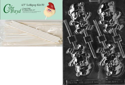 Cybrtrayd 00045St50-C096 Santa Lolly Jumping Christmas Chocolate/Candy Mold with 50 4.5-Inch Lollipop Sticks