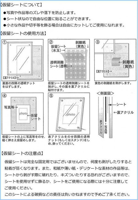| 純度99%の高純度アクリルを使用し、高度な技術による美しいカット面が特徴のフォトフレームです。透明度が高いので、時間の経過による黄変がほとんどありません。シンプルなデザインかつ、壁にかけても置いてもご使用いただけるので、場所を選びません。お部屋の色々な場所に大切な絵や賞状、写真、ポスターなどを飾っていただくことができます。 |