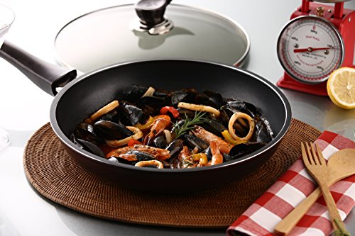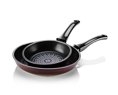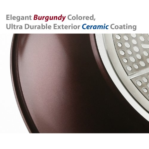 Cookware by TeChef includes a ceramic coated outside which results in an easy to clean, extra durable surface. In contrast to cookware with a uniform thickness, TeChef incorporates a forged aluminum material with thin walls and 3.5 mm thick and heavy bottom. This unique design helps spread the heat evenly across the bottom of the pan and all the way up the sides. The TeChef cookware can be used with all types of ranges, including Induction.
