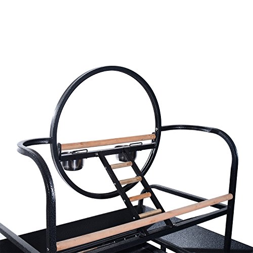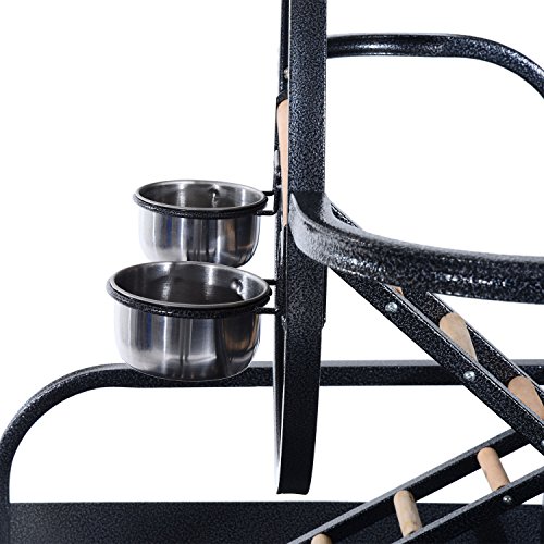 Studio : MTN Gearsmith Publisher : MTN Gearsmith Binding : Misc. Product Description Give your bird the gift of greater freedom with this portable 61.4"H stand from Pawhut that really lets them spread their wings. An open air environment is crucial to the development of your pet and provides them with a chance to stay healthy through exercise and exploration. Cage confinement on the other hand can cause boredom and stress that can possibly lead your bird to suffer from obesity and depression. There's no better way to make your bird a bigger part of your family than with a Pawhut play stand that you can wheel around the house to wherever you are. Birds, being naturally curious, will appreciate the chance to check out all the action. Features : ? Built with stainless steel, popcorn black metal and wood construction for durability ? There are 4 universal wheels with brake ensuring flexible and secure movement ? Included ladders and ring for your birds to play ?Multiple wooden perches for resting ? Wide, high-edge tray helps contain and eliminate potential messy situations ? 2 stainless steel bowls for food and water feeding ? It provides spacious space for birds playing and rest. ? Lightweight, easy to move ? Ideal for parrots, parakeets, aviaries, canaries, etc. Specifications: ? Color: Popcorn black ? Material: Metal ? Overall Dimension: 40.6"L x 29.53"W x 61.4"H ? Bowl Size: Ø3.94" ? Wheel Size: Ø1.97" ? Net Weight: 33.1lbs 0