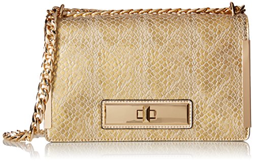 Midsize cross-body bag featuring metallic hardware and chain strap