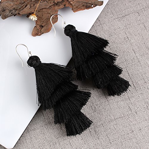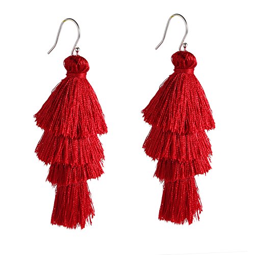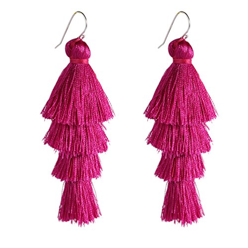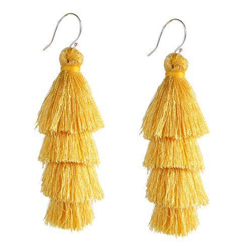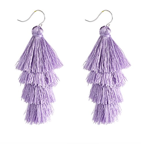 4 Layered Tassel Earrings with sterling silver hook, it is soft easy to adjust the shape