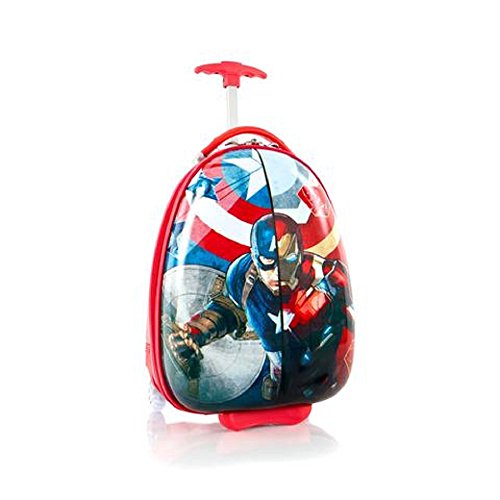 -. Brand : HEYS AMERICA -. ClothingSize : One Size -. Color : Red -. Department : unisex-adult -. EAN : 0665556022229 -. Feature : Dimensions & Weight: 18" x 12.5" x 9"; 3.2 lbs. / Internal 'reversed-curved' handle system that curves the handle inwards & upwards closer to the child, making it much more comfortable for the child - at a low height - to hold and navigate the case / Patent-pending design of this case also allows the wheels to 'protrude' out, the protrusion keeps the case elevated / Inline skate wheels that make their rolling even smoother / Zipper closure system, that when opened reveals a beautifully lined interior as well as a zippered divider for internal organization -. IsAdultProduct : 0 -. MPN : US-HSRL-ES-SP12-16FA -. PackageQuantity : 1 -. PartNumber : US-HSRL-ES-SP12-16FA -. ProductGroup : Apparel -. ProductTypeName : LUGGAGE -. Size : One Size -. Title : Heys Marvel Captain America Wheeled Carry On -. UPC : 665556022229