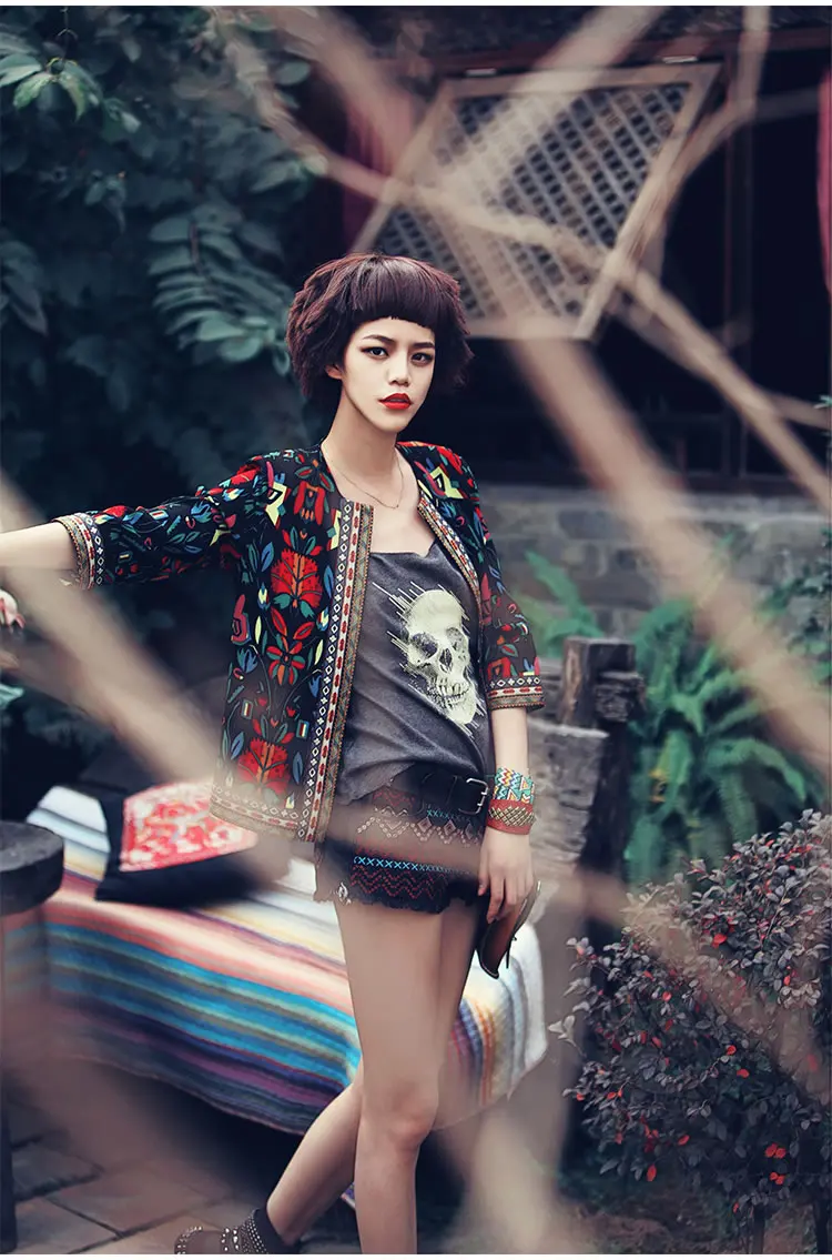 Embroidery Print Jacket Ladies Ethnic Style