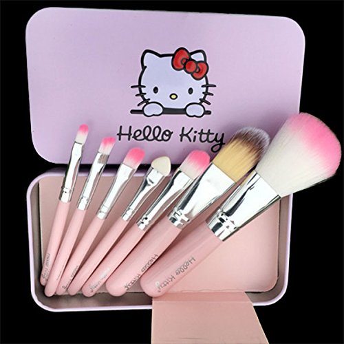 Mini Hello Kitty Cute Cosmetic Make Up Brush Set 7 pcs with case (Pink)