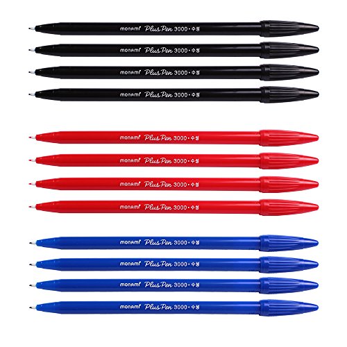 Monami Plus 3000 Office Sign Pen Felt Tip Water Based Ink Color Pen Complete Red,blue,black Dozen Box