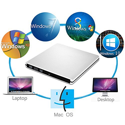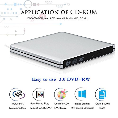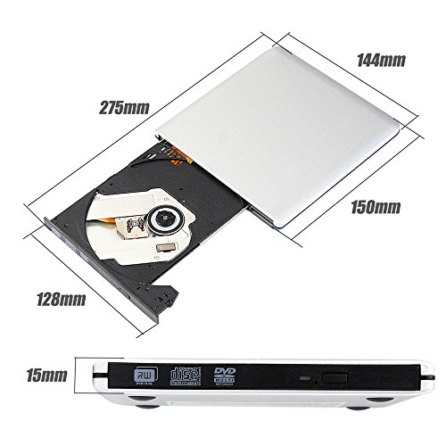 ❀ Classic Appearance -- The Material is Aluminum. With grinding surface finish, this CD/DVD writer/burner is fashionable. This external hard drive features ultra slim, lightweight, compact, portable