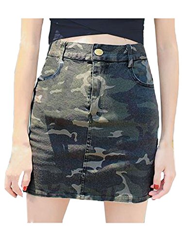 -. Title : MIKA&MAYA スカート レディース ショート丈 迷彩 デニム ミニ タイト カジュアル ジップ
